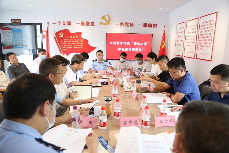 随后,调研组一行在金堂服务区党群服务中心开展了“暖心之家”体验宣传座谈会,会议听取了成德南公司、成巴线路货车司机流动党支部以及金堂县交通行业党委依托“暖心之家”开展的一系列活动、运营管理等亮点工作的汇报,同时还邀请货车司机就暖心之家的服务管理进行了发言。与会人员就规范“暖心之家”常态化运营服务标准,建立管理运营长效机制进行了充分探讨和交流,大家一致认为“暖心之家”的建设要立足需求,并结合行业实际,因地制宜的开展,切实提升货车司机群体的获得感、幸福感、安全感;在加强服务的同时,要跟进流动党员队伍的建设,整合党群资源,拓展延伸“暖心之家”的功能作用,积极引导货车司机群体“听党话、跟党走”,助力社会主义和谐建设,推动“暖心之家”持续良久运转。