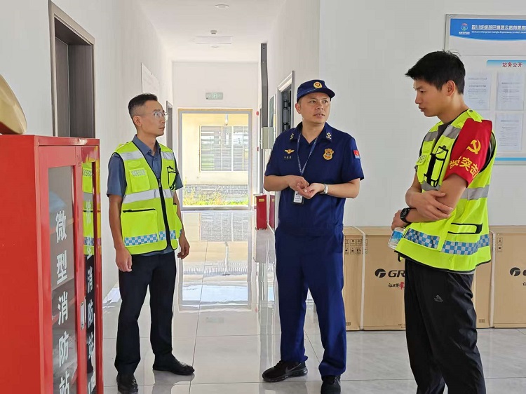 检查组一行对三台管理处辖区各站、区的仓库、厨房、餐厅、员工宿舍、办公区、发电机房、配电房、收费亭等重点防火部位和消防灭火器材进行拉网式检查。检查过程中,消防救援大队专业人员结合典型火灾案例,针对不同区域火灾风险特点,现场讲解消防安全管理要点。在服务(停车)区,强调要加强对过往车辆消防安全宣传提醒,定期开展疏散演练,在收费站,演示灭火器 “提、拔、握、压” 正确操作步骤,提升一线员工应急处置技能。