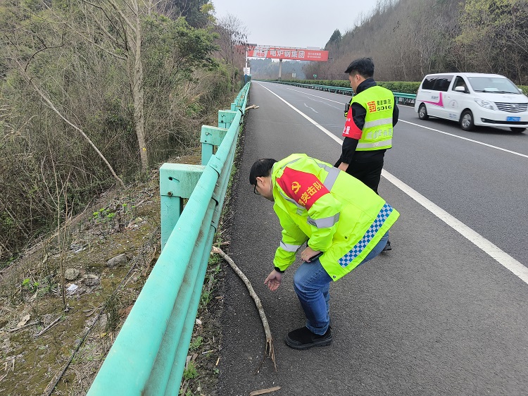3月20日,三台党支部党员干部幸望同志会同第一和第三党小组成员巡逻班组对辖区路面、桥梁伸缩缝、涵洞、隧道、服务区等重点部位进行日常的安全隐患巡查工作,通过全程跟班深入全面地了解路产管护日常工作,并对工作中发现的问题及时进行指导和纠正,对不能及时整改的问题报送相关部门跟进维修处治,确保问题隐患清零。