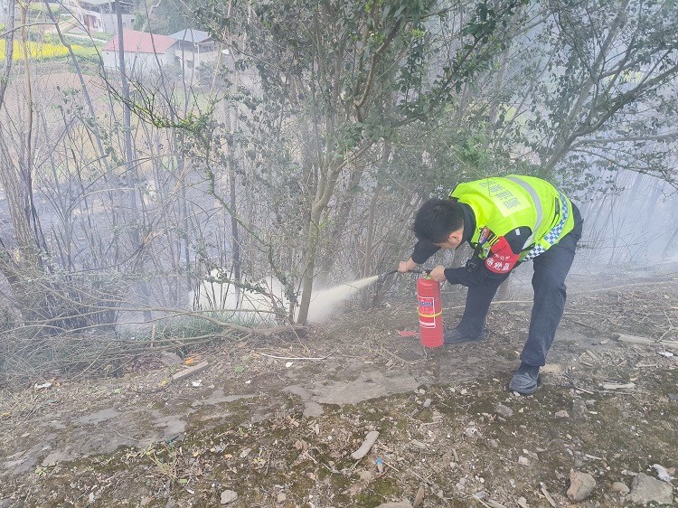 13:50,经仔细排查,火场无复燃迹象,道路管控解除,此次火灾处置完毕。随后,临时消防小队会同现场秋林镇书记、红星村村长及现场村民针对清明节前后森林火灾预防开展安全宣传,并向周边村民群众普及高速公路涵洞、桥下空间等区域禁止堆放柴草相关法律法规及危害。