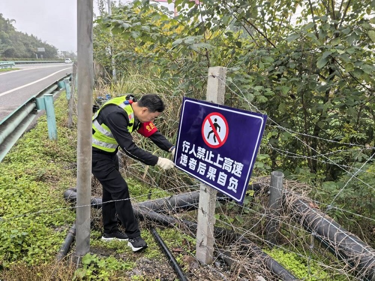 因部分隔离栅被附近村民私自剪开,形成行人违规上高速的便捷 “通道”。为化解这一重大安全风险,党员们结合岗位实际,迅速转换角色,化身道路安全 “守护者”,兵分多路奔赴辖区高速公路沿线关键地段,全面排查边网设施情况。在巡查过程中,党员们细致入微,沿着高速公路隔离栅逐段检查,对破损、缺失的边网进行重点标记,并当即拍照记录、详细定位,及时上报养护部门安排修复事宜,力求第一时间消除隐患。