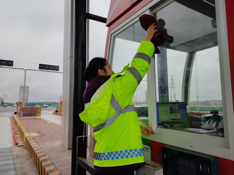 新都收费站不仅是车辆往来的关键枢纽,更是展现城市风貌与交通服务品质的重要窗口,而在这扇窗口背后,有一群默默付出的守护者,他们以辛勤劳作守护着收费站的每一寸洁净。这些守护者用汗水和努力,为高速路的畅通与舒适贡献力量,让每一位过往的司乘人员都能感受到家一般的洁净与温馨,成为高速路上一道别样的风景线。